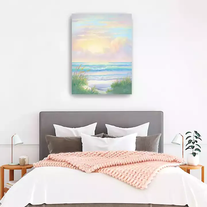 Our Sunlit Waves Canvas Art Print beautifully captures the peacefulness of a beach sunrise. This piece is sure to make you feel as if paradise is just outside your door.