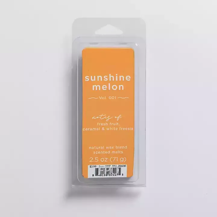 Our Sunshine Melon Wax Melts have bursts of watery fresh melon and juicy apricot. Notes of pineapple and white freesia are garnished with sweet cantaloupe and cherry for the feel of a bright, sunshiny day!