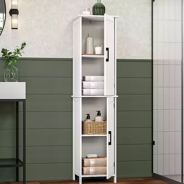 This Tall White Wood 2-Door Storage Cabinet is an easy way to get your bathroom organized! It’s perfect for storing towels, toiletries, and other supplies. You’ll love how it gets rid of clutter!
