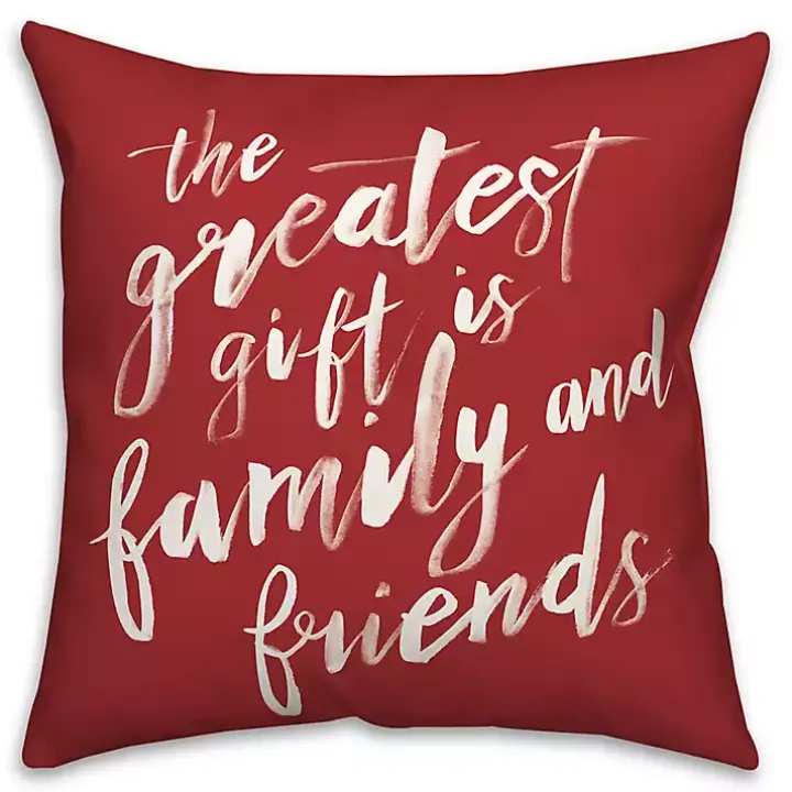 Add a simple and sentimental accent to your favorite armchair this season! Our The Greatest Gift Christmas Throw Pillow features a sweet phrase and a bright holiday color.