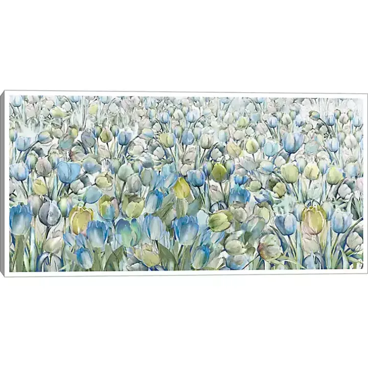 Dance in the soft petals of the breathtaking tulip field. The Tulip Parade Framed Canvas Art Print will be a lovely floral addition to your living space!
