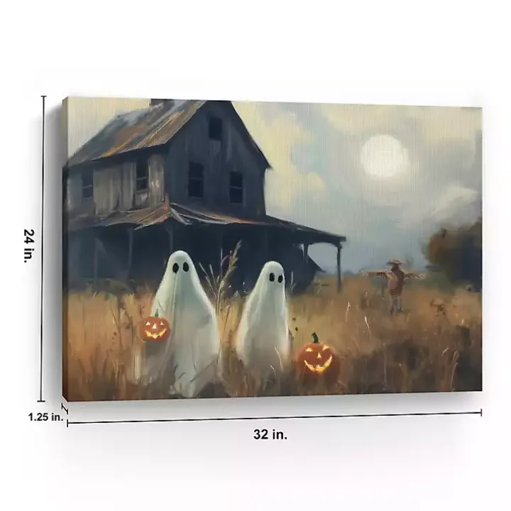Featuring a classic ghost duo in an eerie field, this Two Ghost Friends Canvas Art Print has a mysterious quality that will welcome Halloween into your home!