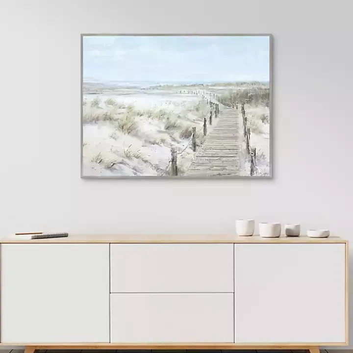 Step onto the the path of relaxation with our Walk To The Coast Framed Canvas Art Print! This stunning landscape will make your home a destination for coastal leisure.
