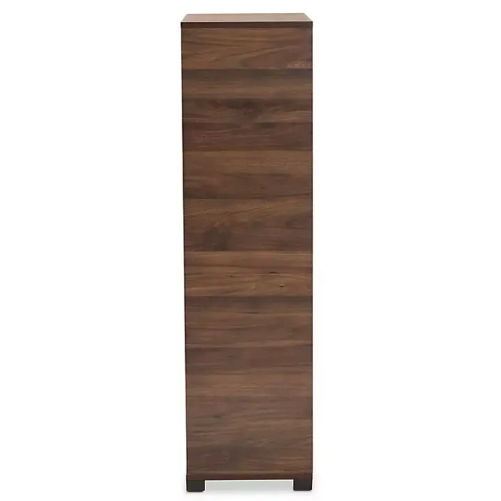 Give your mudroom a storage upgrade with our Walnut Brown Asymmetrical Shoe Storage Cabinet! This convenient piece holds up to twleve pairs of shoes, making organization easy and stylish.