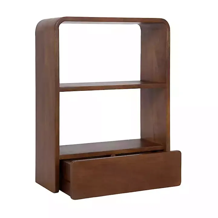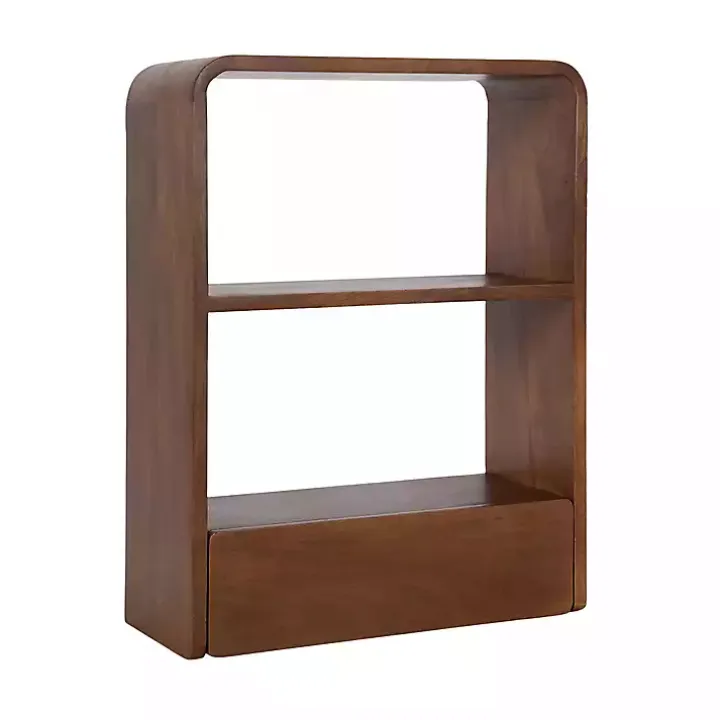 Storage and style meet in this Walnut Brown Kato Single Drawer Wall Shelf. Its smooth, curved lines will update any wall, while its shelves and drawer provide plenty of storage space!