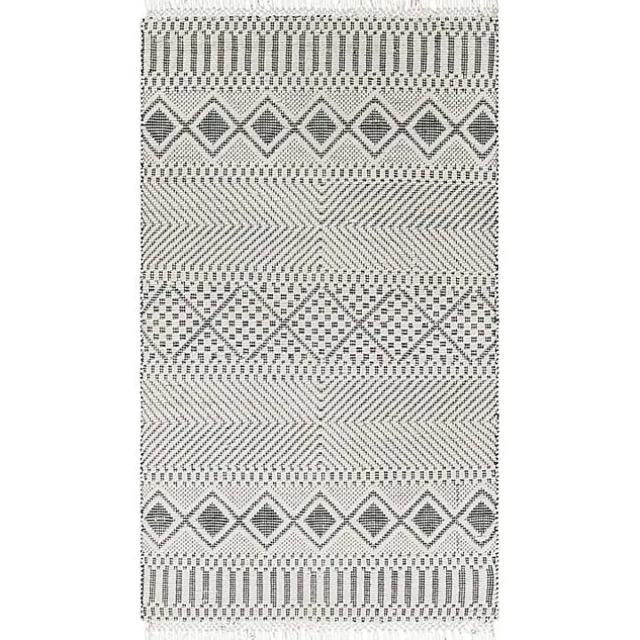 Add an eclectic charm to your home with this White and Black Diamond Tassel Wool Area Rug. Its intricate, handwoven design ushers in a fresh dimension, completing any space!