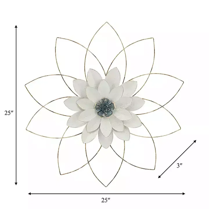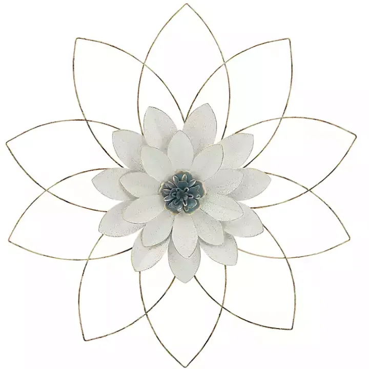 Brighten your home with this White and Gold Metal Flower Wall Plaque! This lively flower has a rustic finish, making it perfect for a farmhouse style space. You’ll love the gold finish!
