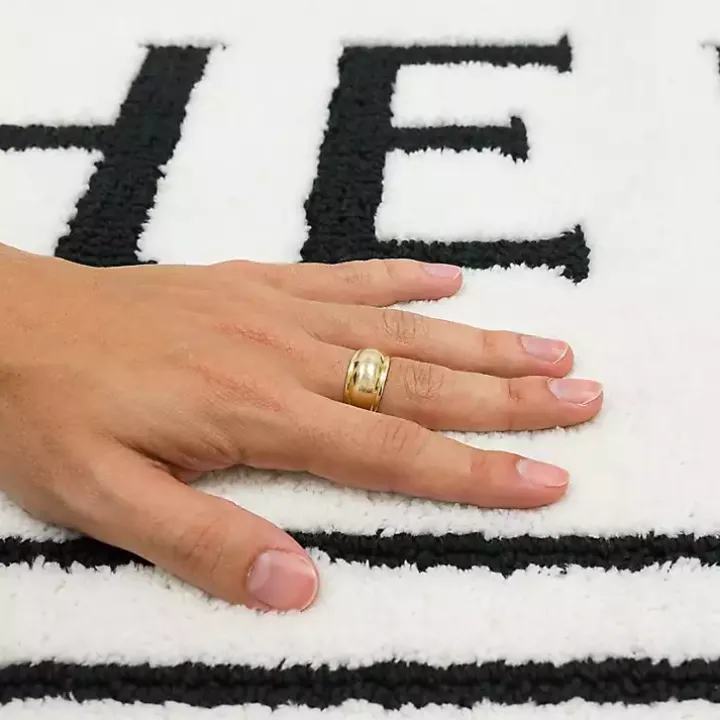 Customize your bathroom with this White & Black “Hers” Plush Bath Mat! Inspired by luxurious hotel textiles, this bath mat will look and feel like your very own home spa.