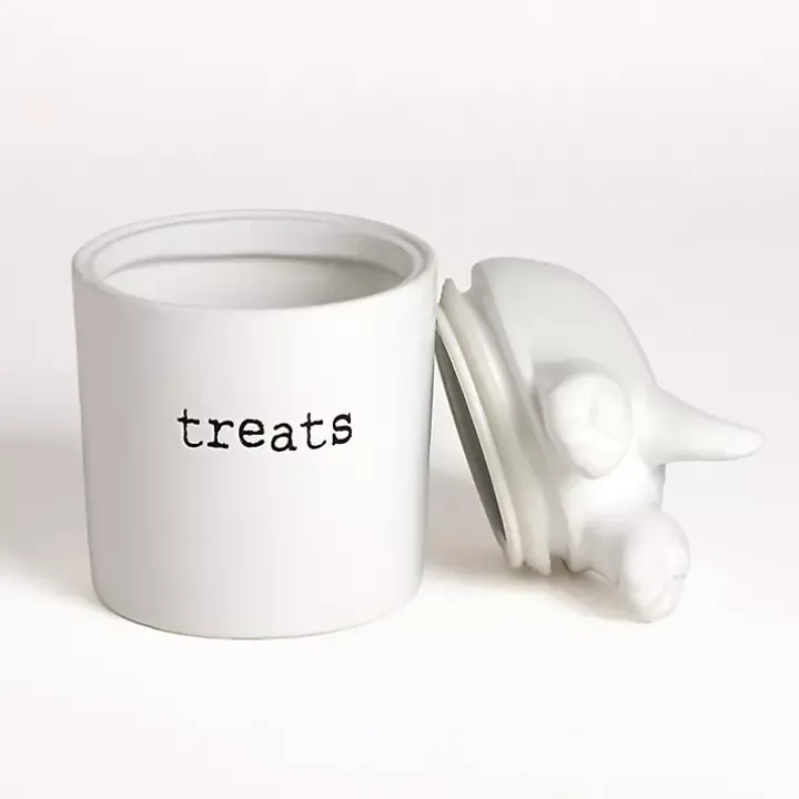 Add a cute look to your pet supplies with our White Ceramic Dog Treat Canister! This cheeky canister is perfect for storing your furry friend’s treats without bulky boxes or bags!