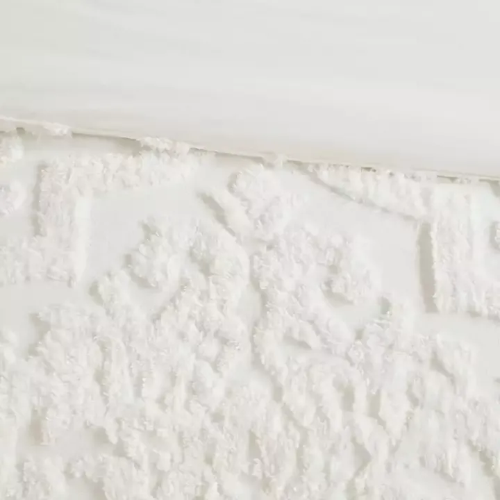 - Features tufted chenille damask design