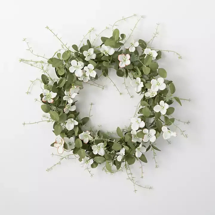 Bring spring beauty to your front door with our White Dogwood and Greenery Wreath! The dainty white flowers mixed with lush greenery will instantly refresh your entryway.