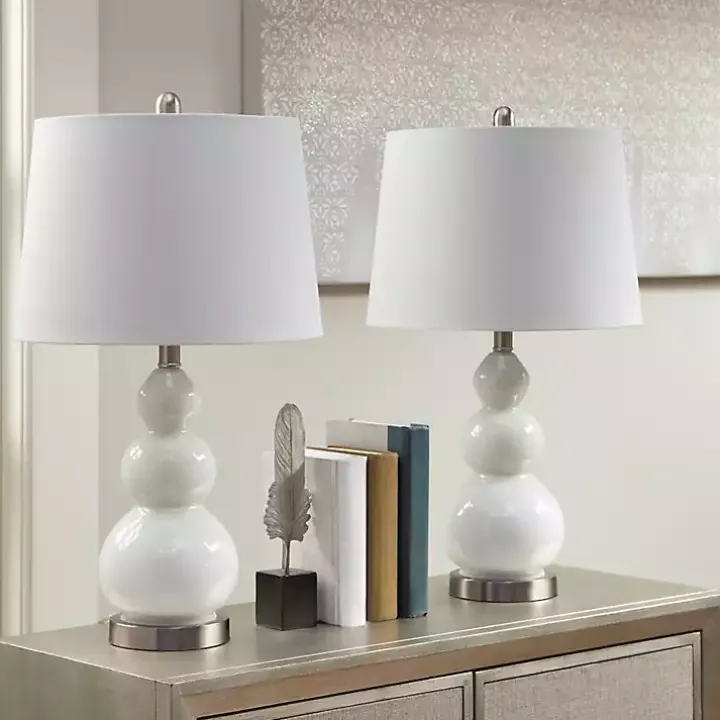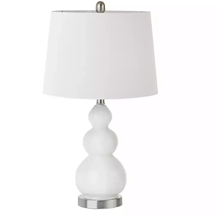 Enhance your space with these White Glass Covey Table Lamps! The beautiful white glass and silver metal base is complemented by a white tapered drum shape shade. Place this table lamp in your living room or bedroom to complete your modern decor!