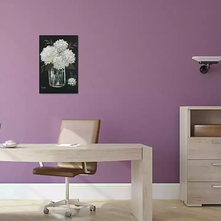 Styled on light-colored walls, this White Hydrangeas Canvas Art Print brings an element of drama into any space. Awaken your kitchen or home office with this lovely floral art.