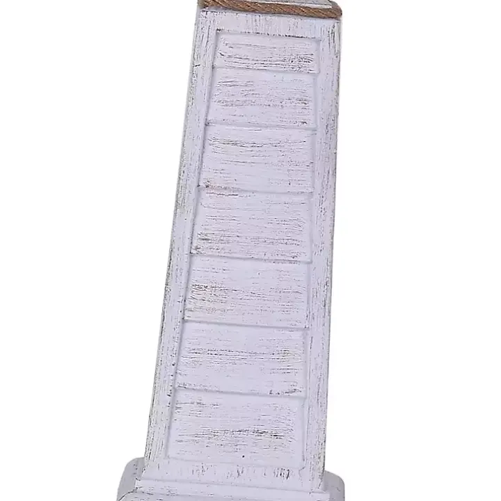 Light up your traditional farmhouse space with the set of White Louvered Shutter Table Lamps! The oatmeal linen shades, shutter bases, and distressed finish create a striking design.