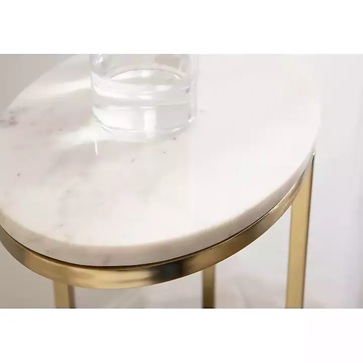 Our White Marble and Gold Oval C-Shape Accent Table is designed to elevate your living space with its sleek and contemporary style! Its oval shape adds a unique twist to the classic space-saving C-table design, making it a standout piece in any room.