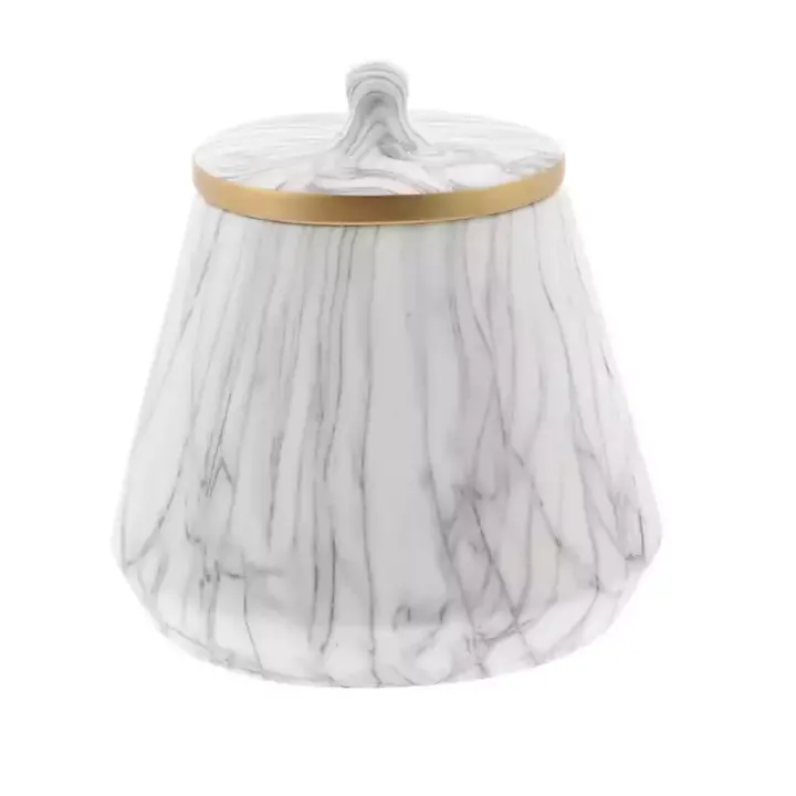 This White Marble Oval Jar will make an ornate accent in your home. Use it for some beautiful storage in any space, from the bathroom to the kitchen!