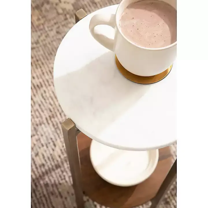 Our White Marble Walnut Accent Table is a beautiful combination of fashion and function to suit your needs. This side table is made by skilled artisans, making each piece absolutely one-of-a-kind!