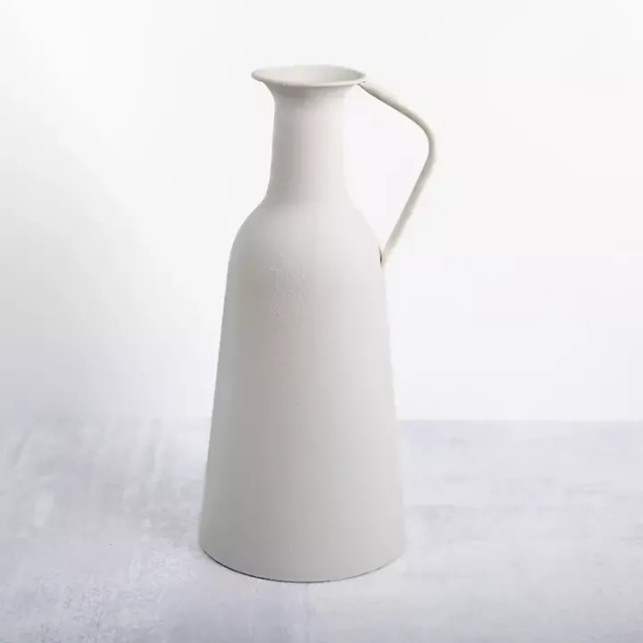 Display your blooming faux flower arrangement with our White Metal Jug Floor Vase! Its smooth, neutral finish will blend with your décor while adding a modern farmhouse touch.