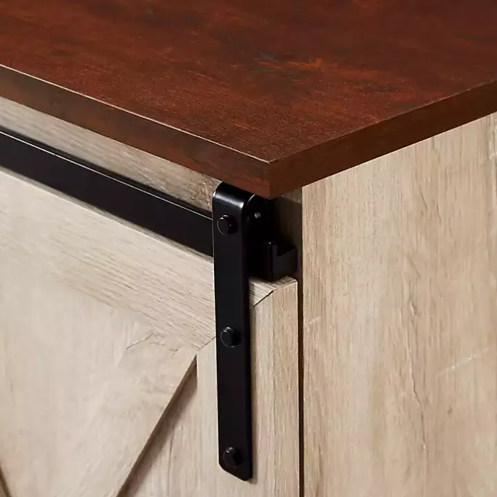 - Features two (2) sliding barn doors and an oak wood top