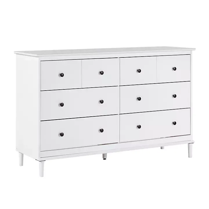 Looking for a piece to add sophistication to your bedroom? This White Pine 6-Drawer Modern Dresser features plenty of storage space with a stylish touch!