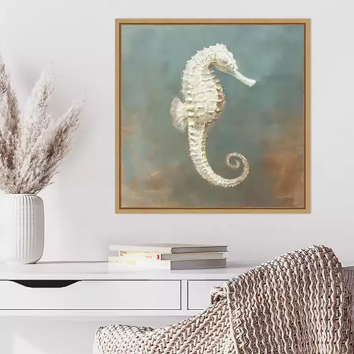 Add some marine life art to your home with the White Seahorse Canvas Art Print. The pastel colors and unique design of the seahorse will be a lovely nautical addition to your wall!