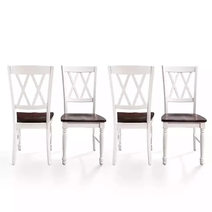Crafted with a traditional aesthetic, our White Wood Farmhouse Dining Chair Set perfectly pairs with a farmhouse dining table. Charming details, like the turned legs and double X-back design, add elegance to any dining room or kitchen!