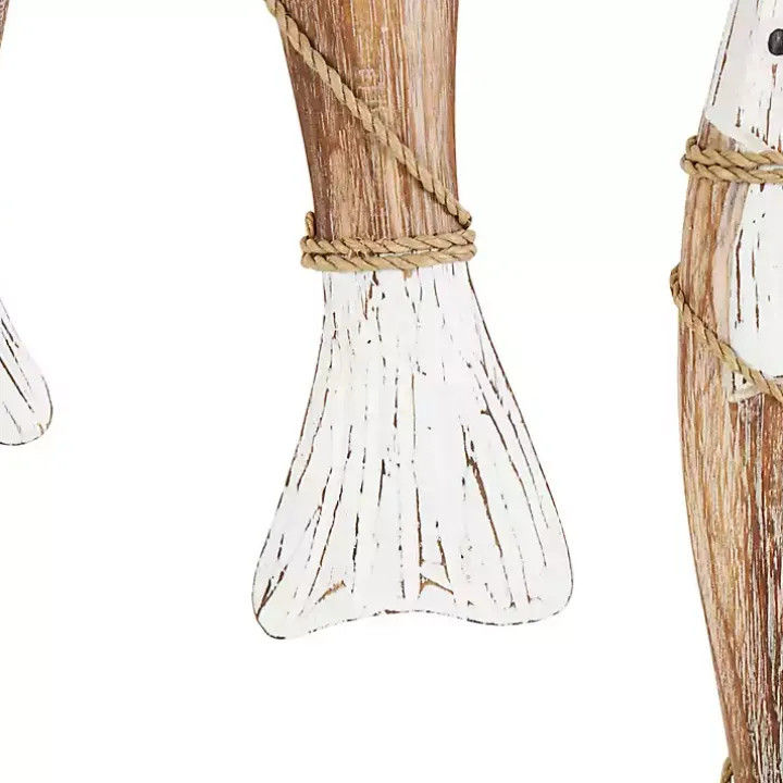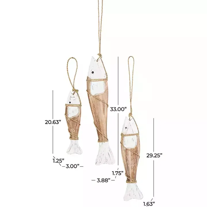 Invite the playful energy of the sea into your home with these White Wood Fish Hanging Wall Plaques. This set will add the perfect nautical touch to your space!
