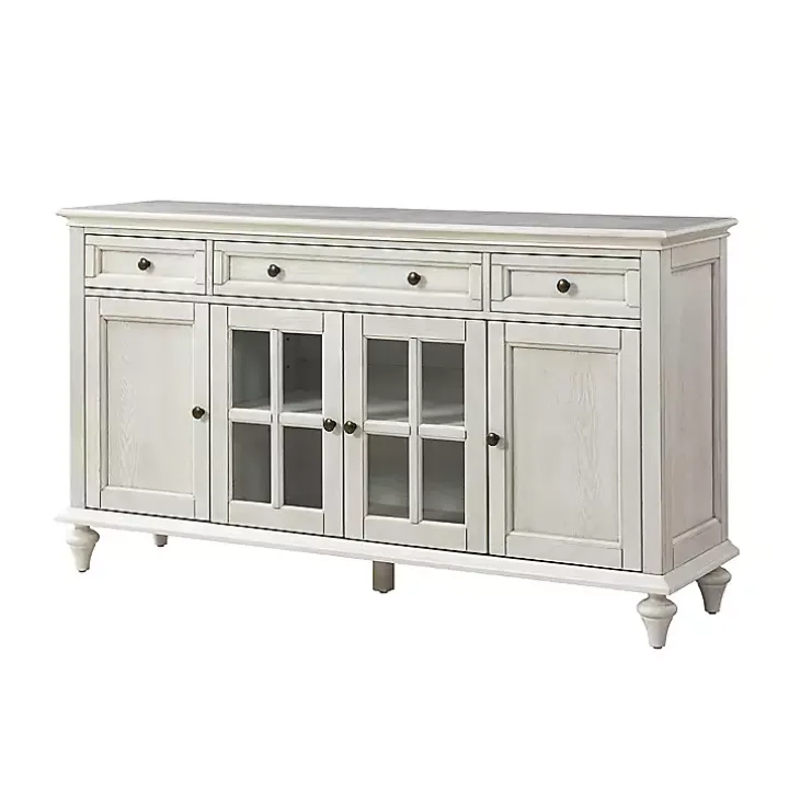 Storage meets style in this White Wood Glass Door Sideboard Cabinet! Its timeless design is perfect for any space, from organizing dishes in the kitchen, to displaying books and photos in the living room!