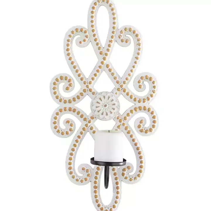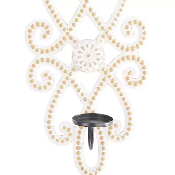 Highlight your shabby chic style by hanging our Whitewash Beaded Scroll Sconce on any wall in your modern home! You’ll love the distressed finish and the classy fleur-de-lis design.