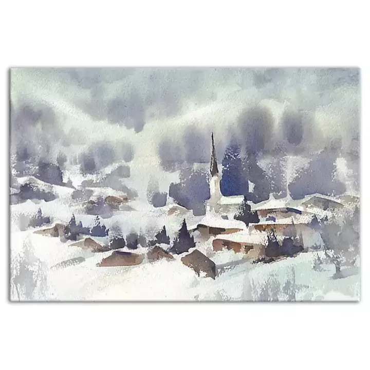 Immerse yourself in the peace and quiet scene of this Winter Abstract Landscape Canvas Art Print. The blue hues, delicate snow, and cloudy sky create a calm yet moody feeling.