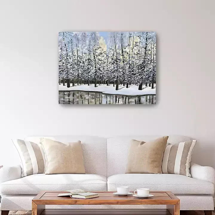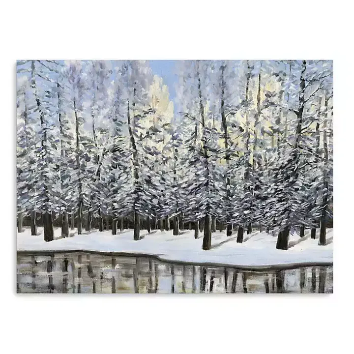 Featuring a snowy scene, this Winter Forest Landscape Canvas Art Print radiates the quiet, natural beauty of the holiday season. It will make a stunning addition to your art collection!