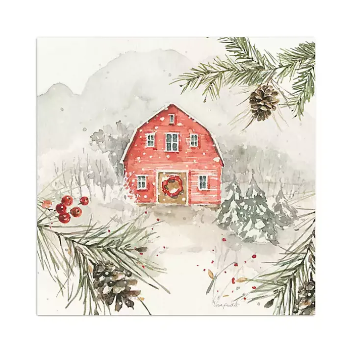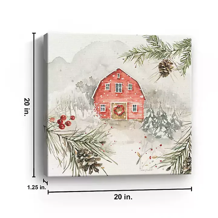 Add a slice of country Christmas charm to your walls with this Wintery Pineberry Barn Canvas Art Print! You’ll love how the rustic red hues add an element of holiday nostalgia to your home.