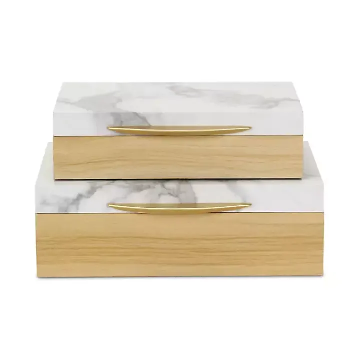 Deliver modern flair to your room with our Wood and Faux Marble Rectangular Boxes, Set of 2. This practical set stylishly keeps your keepsakes out of sight.