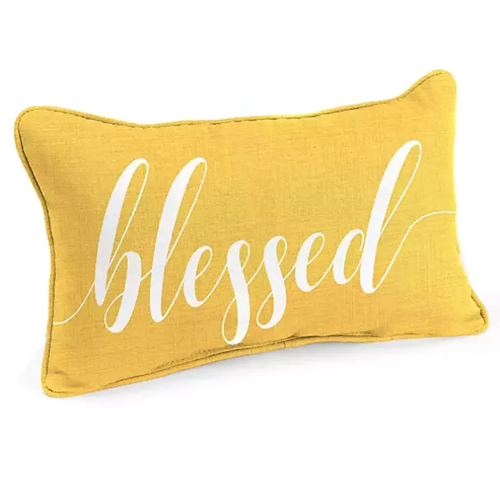 Embellish your porch or patio with this Yellow Blessed Outdoor Lumbar Pillow. Its adorable pattern and warm tones will add the perfect fall touch to your space!