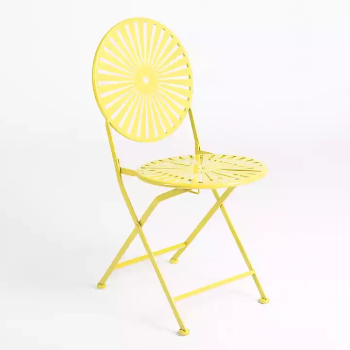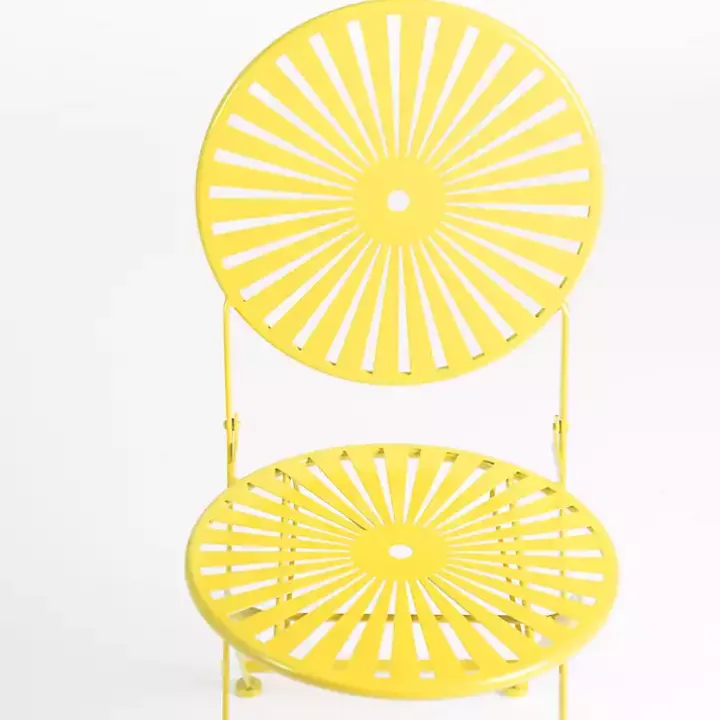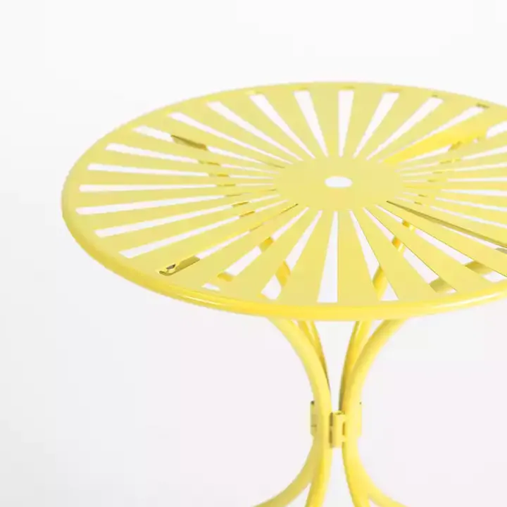 Spend more time in your outdoor space with this Yellow Sunburst Metal 3-pc. Outdoor Bistro Set. Featuring a bright, sunny color, this set will bring the feeling of summer to your porch or patio!